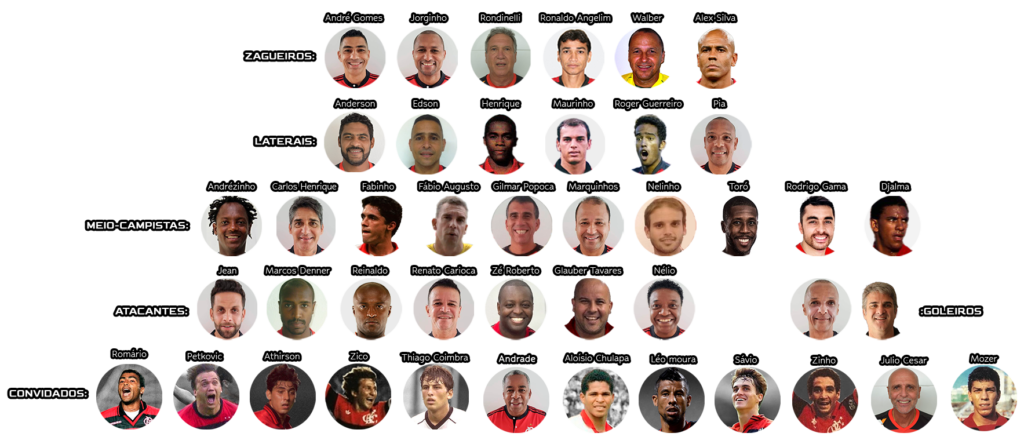 O Fla Legends é o time de veteranos do flamengo, formado por grandes ídolos que marcaram época no clube. Criado para manter viva a história rubro-negra, o projeto reúne ex-jogadores que conquistaram títulos inesquecíveis e deixaram sua marca no coração da torcida.